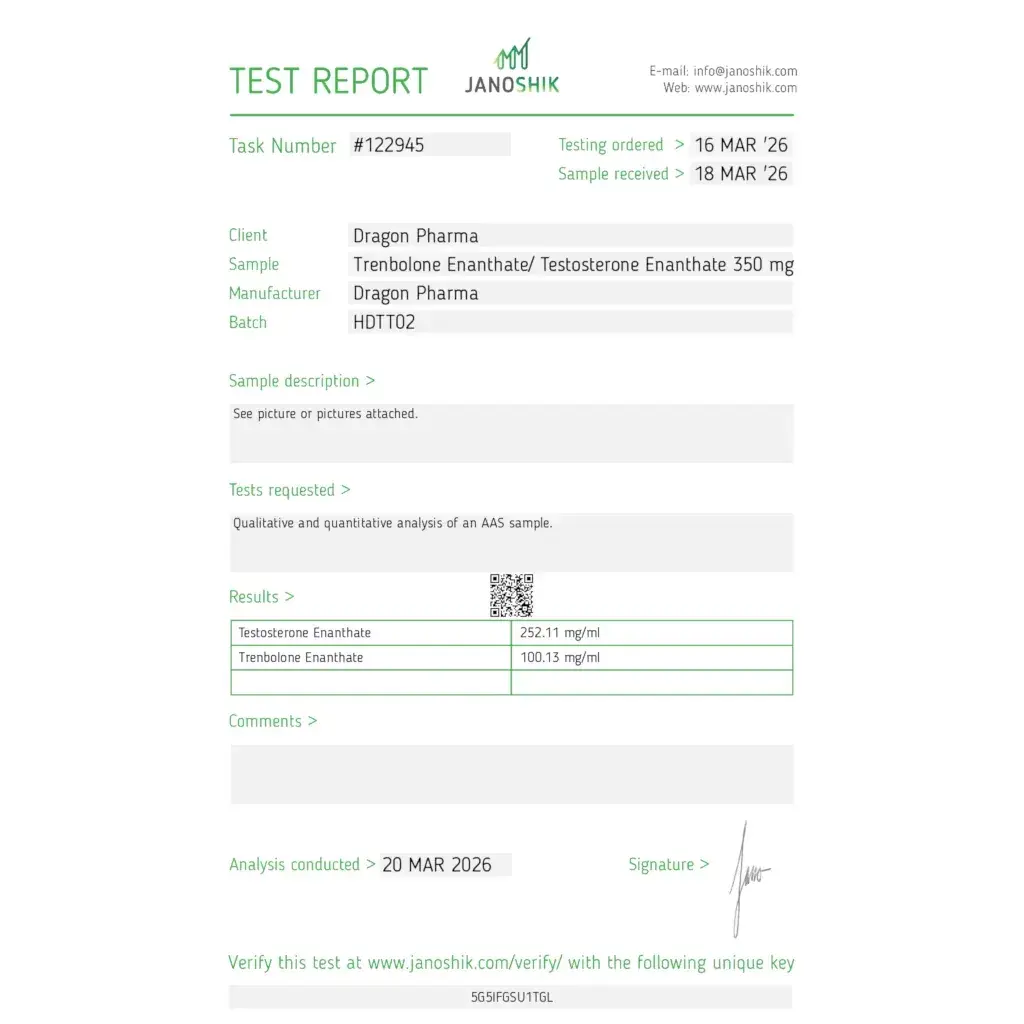 Manufactured by Dragon Pharma steroids, this compound is part of a pharmaceutical-grade lineup known for consistency and verified potency. Tren/Test 350 is typically used in bulking or recomposition cycles where both anabolic intensity and hormonal support are required.